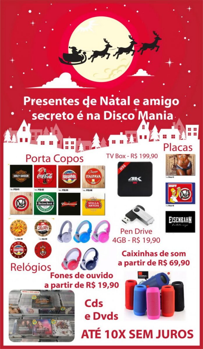 Compras de Natal e amigo secreto podem ser parceladas em até 10x na Disco Mania