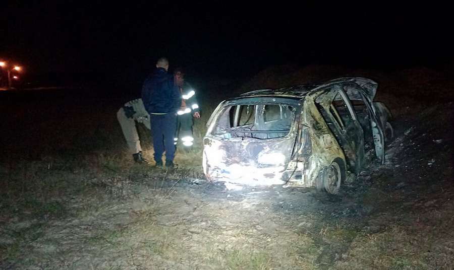 O carro queimado é um Renault Sandero com placas de Capão da Canoa.