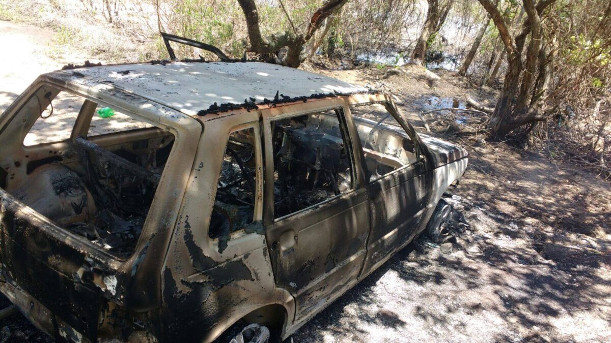 Um corpo carbonizado com um fio de luz no pescoço e amordaçado foi localizado dentro de um carro totalmente queimado, às margens da Lagoa dos Barros, na tarde desta quinta-feira, em Santo Antônio da Patrulha.