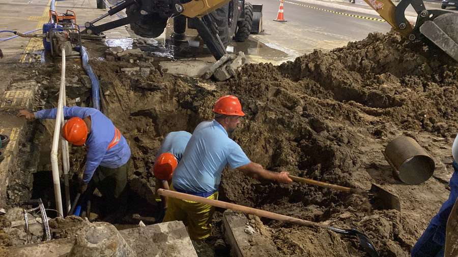 O serviço emergencial, que visa evitar qualquer desabastecimento na região, está em andamento durante a noite.