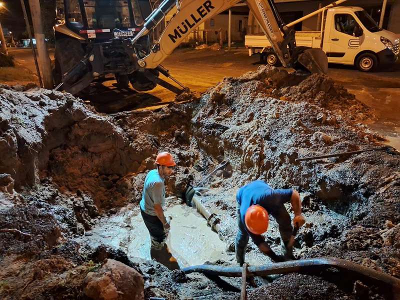 Equipes da Corsan estão empenhadas em consertar uma rede de água rompida na tarde desta terça-feira, 4 de junho, localizada na Rua Lafayette Pereira dos Santos, esquina com a Rua Costa e Silva, no bairro Caravagio, em Osório.
