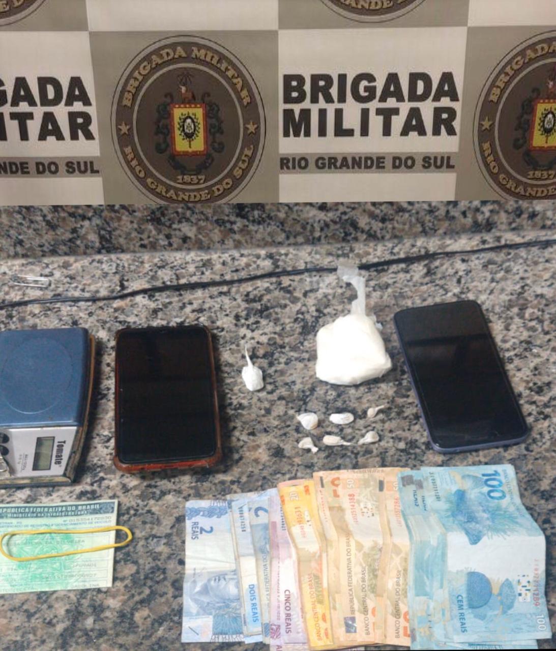 Ele estava com seis pedras de crack 1g, duas porções de cocaína, R$ 2.142,00, dois telefones celulares, uma balança de precisão e uma motocicleta CG 150 Titan KS.