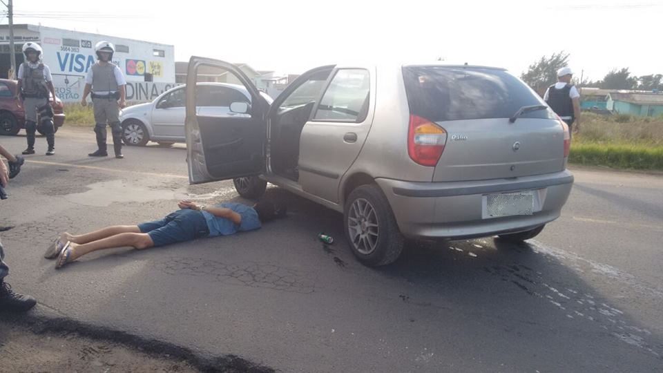 Dentro de seu carro, a Brigada Militar encontrou celulares, tênis e correntes roubados das vítimas.