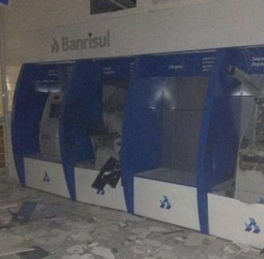 Criminosos explodiram caixas eletrônicos de uma agência do Banrisul do município de Tavares, na madrugada deste sábado (15), o que já tem se tornado comum na região. Cerca de seis bandidos atacaram o banco por volta das 4h30min.