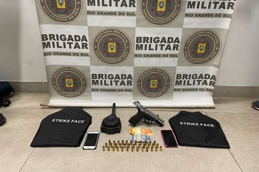 Foi apreendida uma pistola calibre .40, 36 munições do mesmo calibre, um colete balístico, celulares e dinheiro.