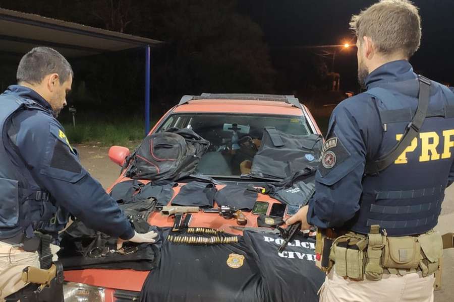 Logo após, os PRFs realizaram buscas no local e conseguiram capturá-los. Dentro de uma mochila que estava com um dos presos foram encontrados vários uniformes similares aos da Polícia Civil e da Polícia Federal.