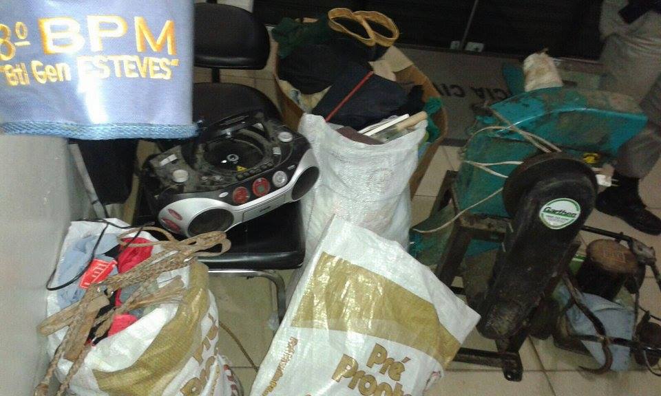 Dentro do carro foram localizados objetos furtados da residência.