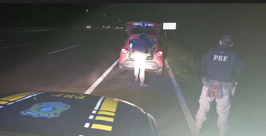A Polícia Rodoviária Federal (PRF) prendeu dois homens na freeway na noite de sábado que estava em um veículo Kwid, que havia sido utilizado em um roubo a estabelecimento comercial em Santo Antônio da Patrulha.