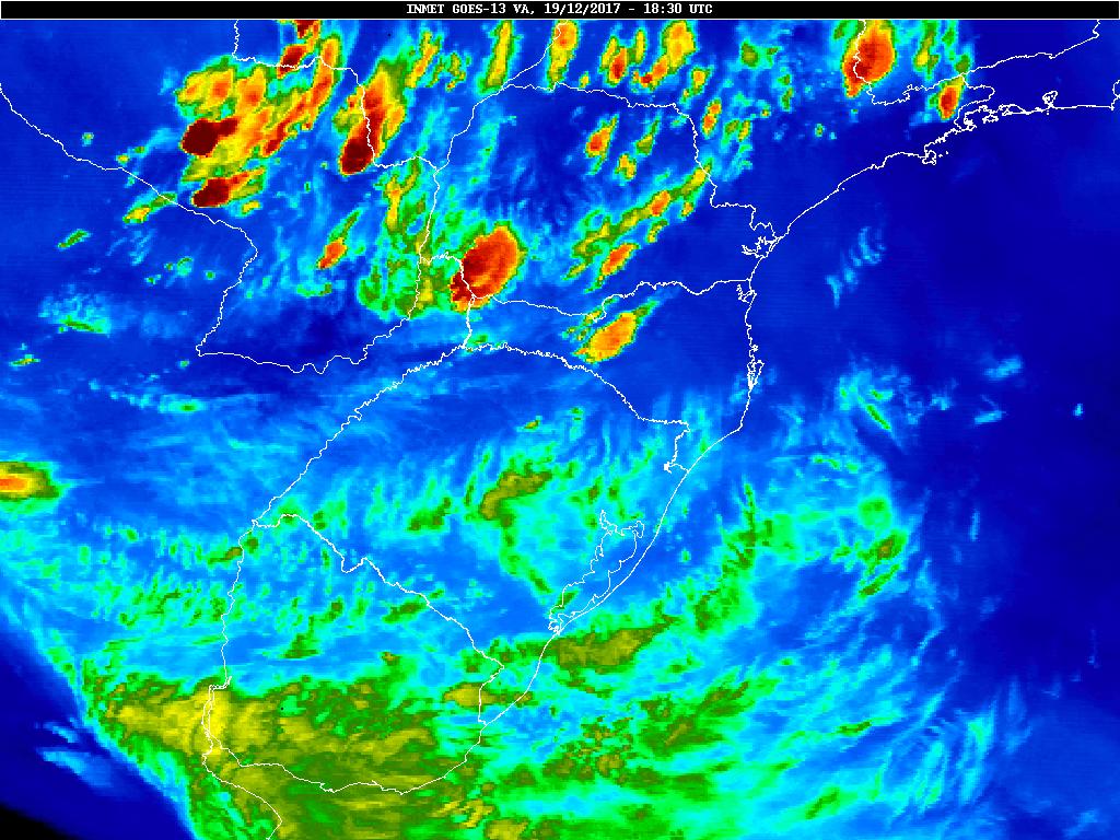 INMET publica aviso iniciando em: 20/12/2017 09:00. Chuva entre 30 e 60 mm/h ou 50 e 100 mm/dia, ventos intensos (60-100 Km/h), e queda de granizo. Risco de corte de energia elétrica, estragos em plantações, queda de árvores e de alagamentos.