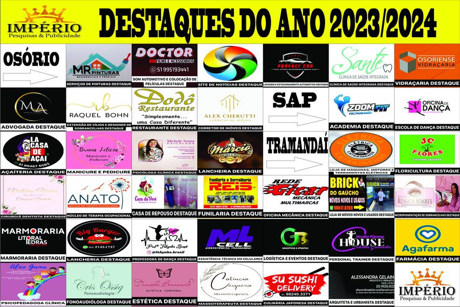A Império Pesquisas e Publicidades, empresa especializada em pesquisas de opinião pública, divulgou os resultados da premiação “Destaques Empresariais e Profissionais de 2023 e 2024” para os municípios de Cidreira, Balneário Pinhal, Imbé, Xangri-Lá, Capão da Canoa, Osório, Santo Antônio e Tramandaí.