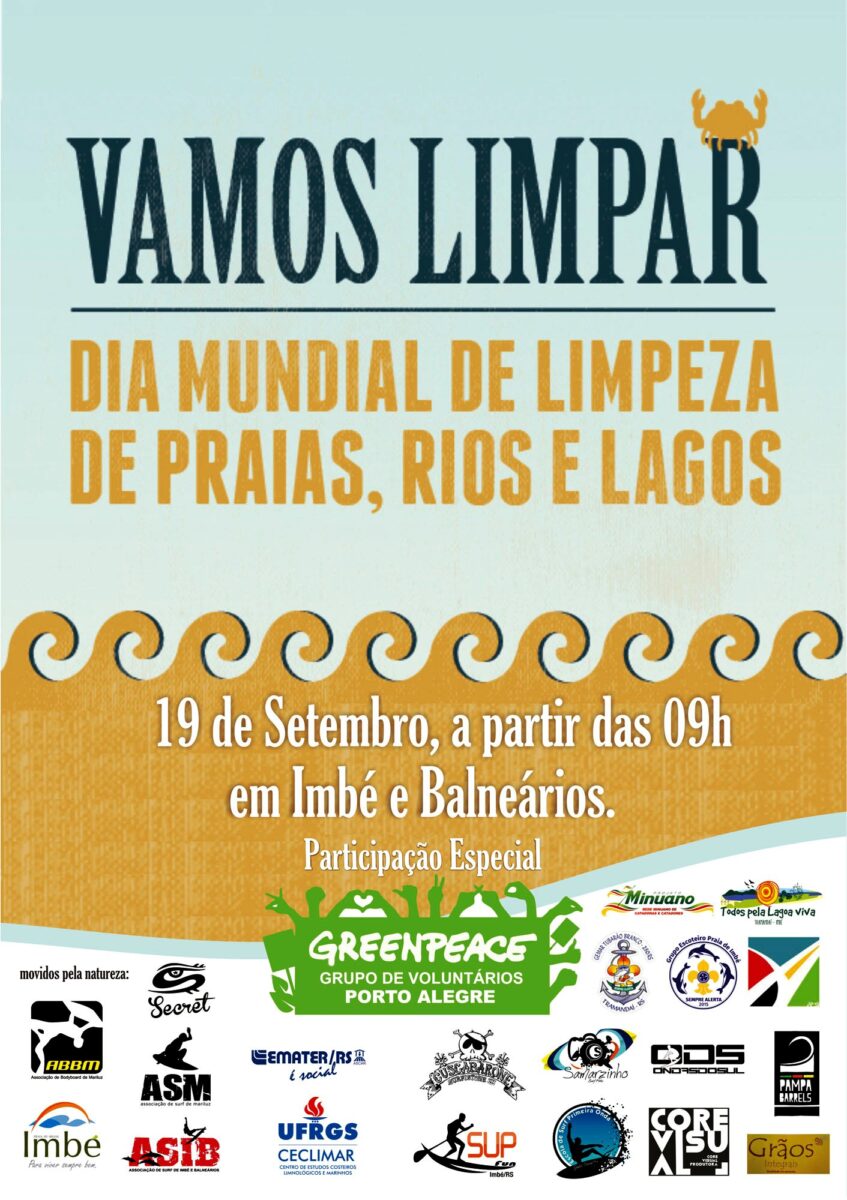 A ação é aberta e qualquer pessoa poderá participar. Uma outra grande atividade de limpeza já está sendo planejada para o dia 03 de outubro, envolvendo a Lagoa do Armazém, em Imbé e Tramandaí.