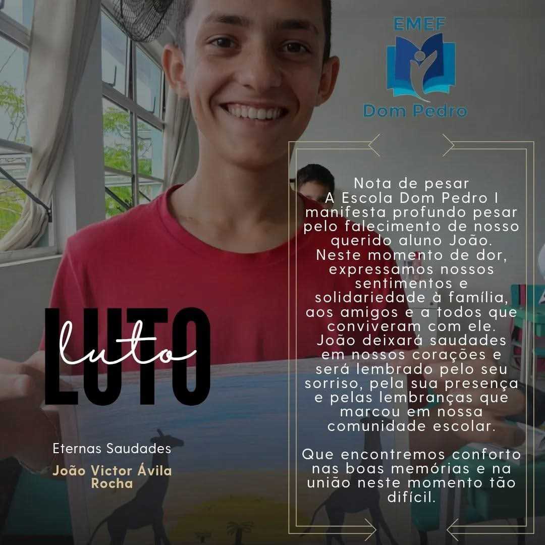 A EMEF Dom Pedro I emitiu nota de pesar pela morte do aluno