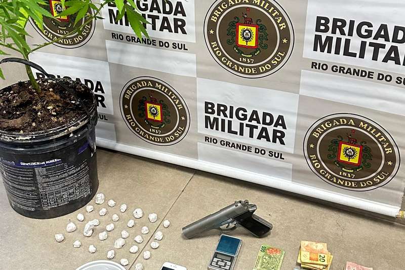 Com eles, foram apreendidos 30 porções de crack, uma planta de maconha, um simulacro de arma de fogo, uma balança de precisão, além de R$ 2.547 e 500 pesos argentinos.