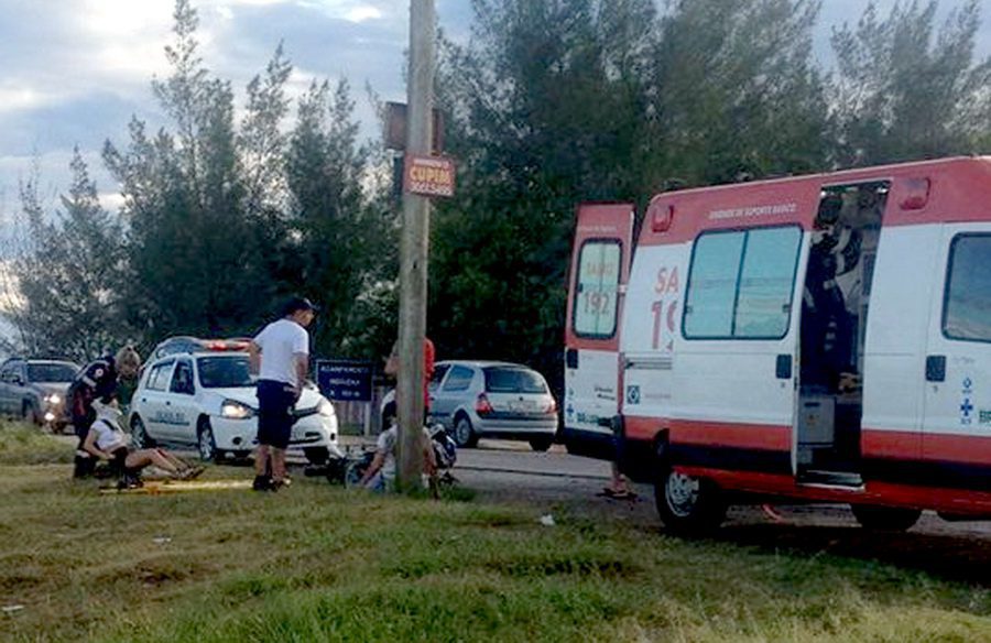 Duas pessoas ficaram feridas em um acidente de trânsito envolvendo moto e carro, na manhã desta segunda-feira (15), em Imbé. A colisão ocorreu na ERS-786, na altura do balneário Albatroz.