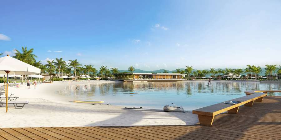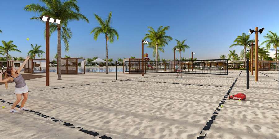 A faixa de areia branca já existente em seu entorno receberá um projeto paisagístico tropical, com palmeiras e calçadão, estilo orla, propiciando caminhadas e sombra natural aos moradores.