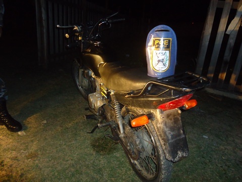 A moto estava sem a placa, chassi e o número do motor raspado. Os acusados disseram ter comprado ela por R$ 500,00.