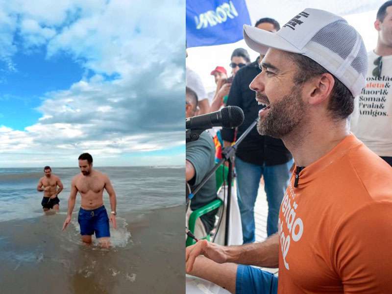 Entre um banho de mar e outras atividades, Leite surpreendeu ao se aventurar como cantor, demonstrando sua versatilidade e conexão com o público presente.