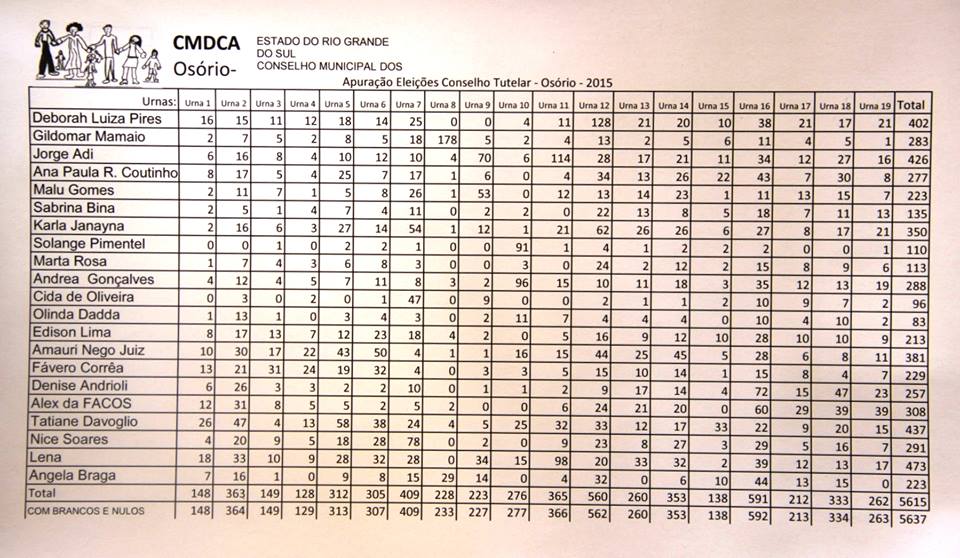 Segue o resultado da eleição do Conselho Tutelar em Osório: