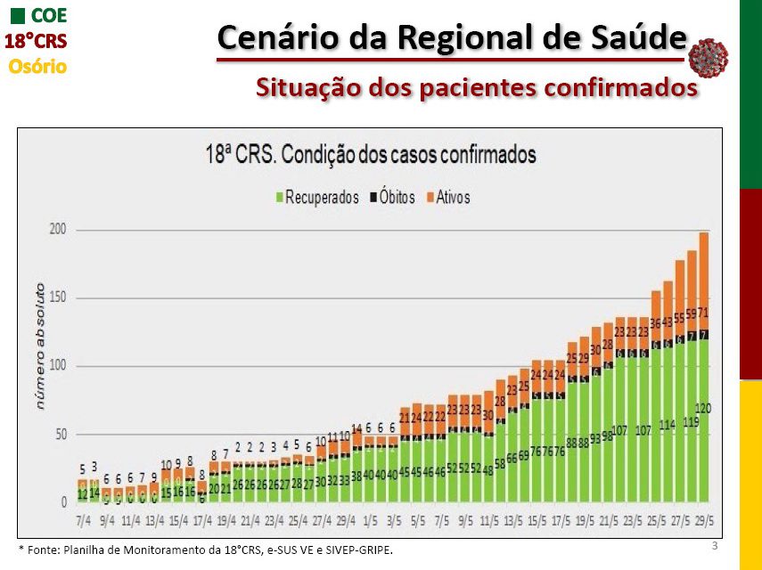 O número de pacientes ativos é o maior (71), desde o início da pandemia. A boa notícia é que os casos que precisam de internação hospitalar são pequenos.
