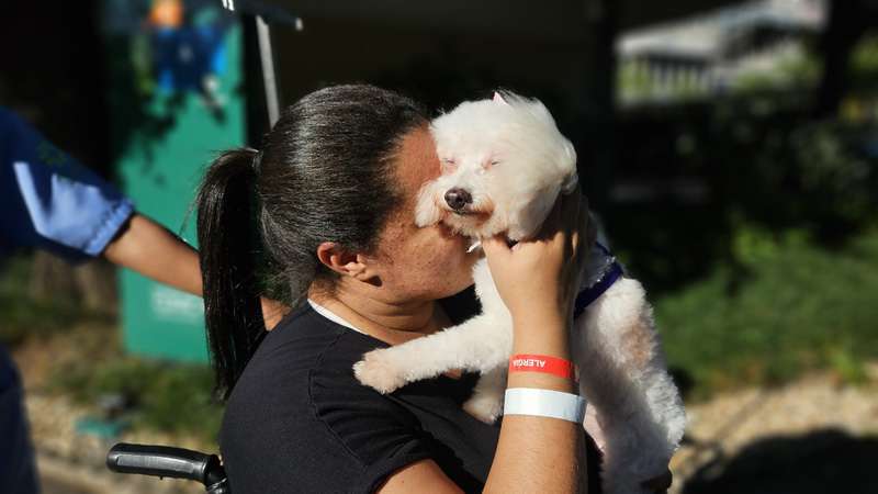 Trazida pela avó, a cachorrinha reconheceu a voz da dona, pulou e logo se acomodou no colo de Rafaela, que chorou abraçada ao animal enquanto recebia seus lambeijos. “Dá um gás para esses próximos dias”, disse Rafaela à Lola.