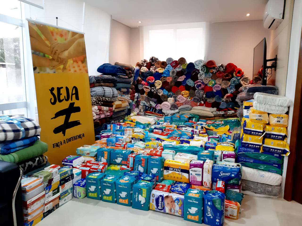 Seja # faça diferença arrecada desta vez, cobertores, luvas, fraldas RN e fraldas geriátricas, itens selecionados pelo hospital para fazer a diferença na ação solidária resultando em: 303 cobertores, 3196 unidades de luvas, 3478 unidades de fraldas RN e 3239 unidades de fraldas geriátricas.