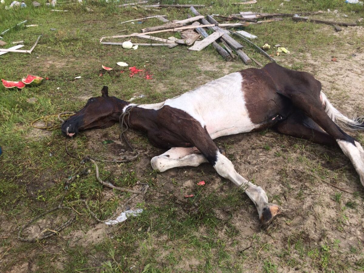 O Comando Ambiental da Brigada Militar ao chegar ao local, por volta das 15h, encontrou o animal muito magro e com lesões, caído ao solo, sem condições de se manter em pé. Segundo informações de pessoas que estavam próximo, tentando reanimá-lo, o dono era desconhecido e o cavalo estava abandonado.