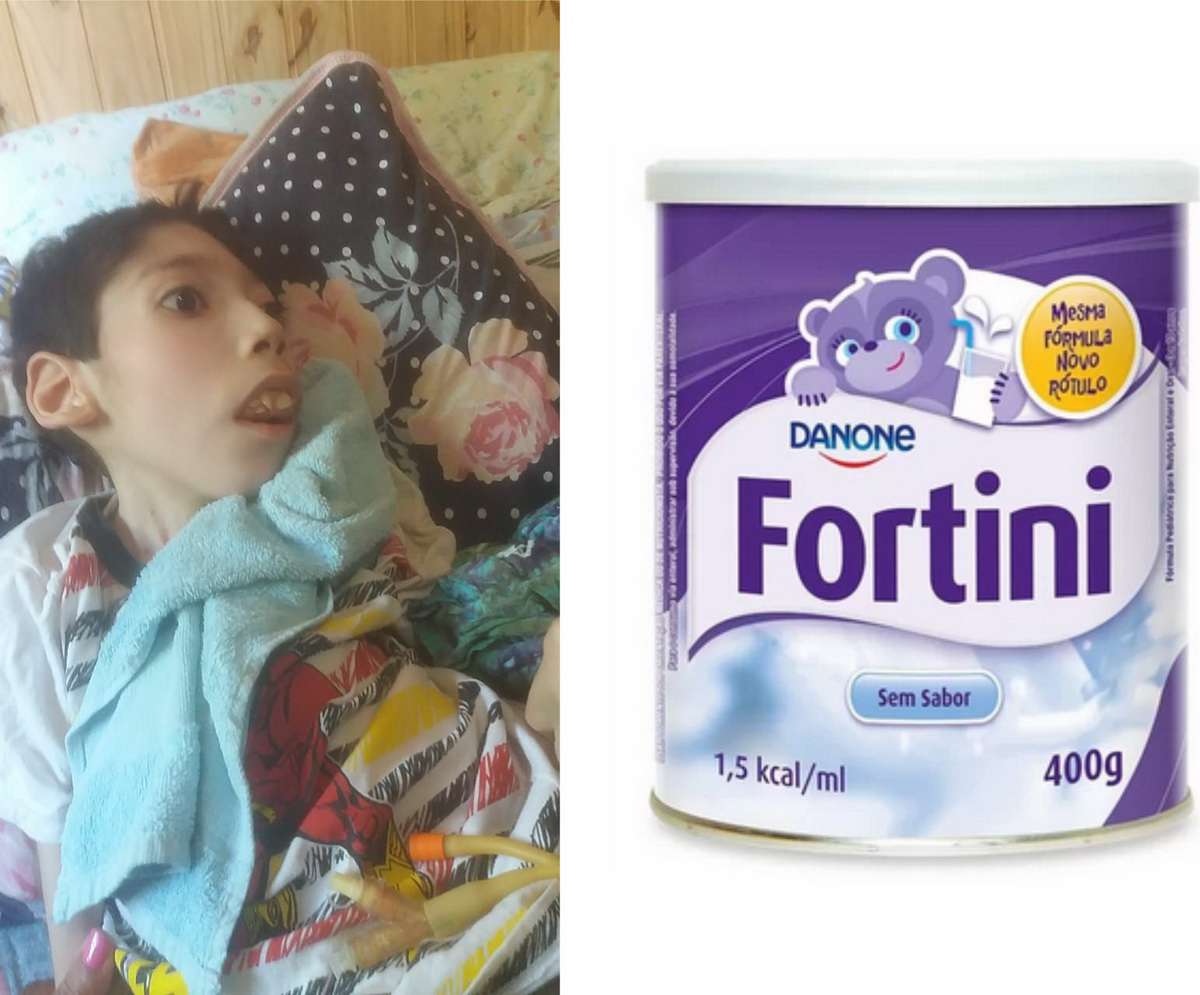 A família do menino Luiz Antônio, de 12 anos, busca ajuda para a compra do leite Fortini Pó.