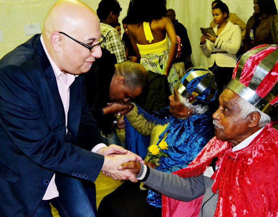 Victor Hugo foi recebido pelo prefeito, Eduardo Abrahão, pela conselheira estadual de Cultura, professora Maria Marques, e pelo rei Congo, José Manoel Borges, e sua rainha Ginga, Isabel Borges. “A Festa de Nossa Senhora do Rosário mantêm viva a tradição dos maçambiques em Osório, um patrimônio cultural, renovando a fé e transmitindo sua história e conhecimento às novas gerações”, destacou o secretário.