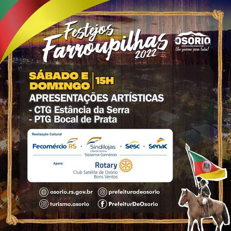 Está chegando a hora dos Festejos Farroupilhas 2022 em Osório.