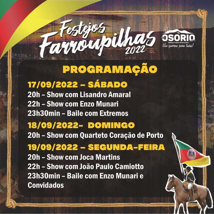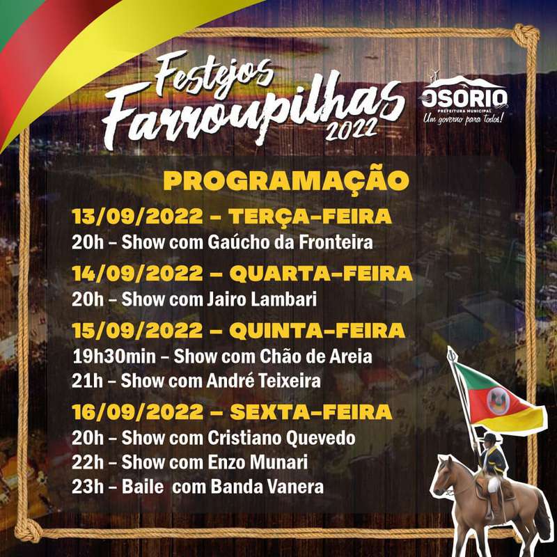 Confira a programação completa e curta os Festejos Farroupilhas 2022 de Osório no Parque de Rodeios Jorge Dariva.