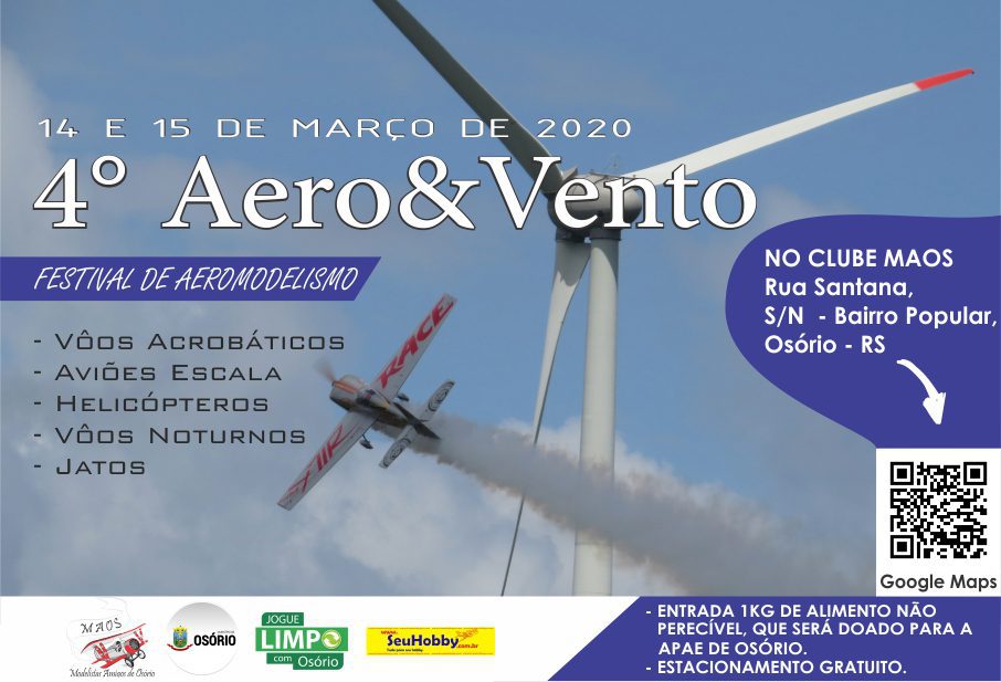 Ocorre neste final de semana 14 e 15/03, o 4° Aero& vento, festival de aeromodelismo, em Osório.