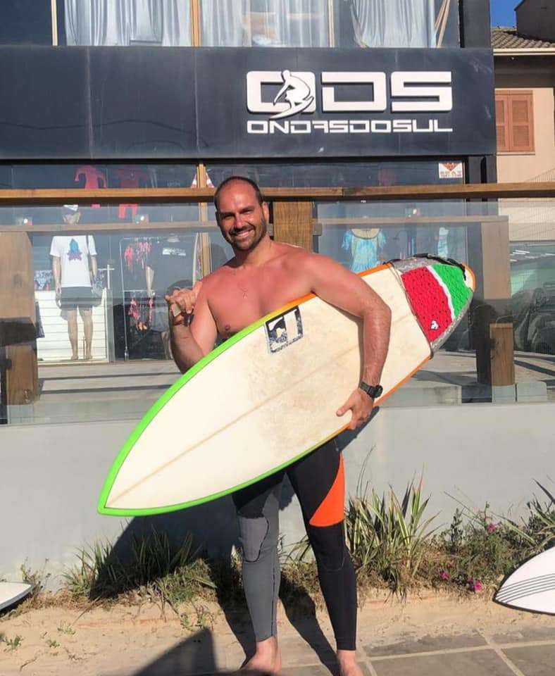 O filho do Presidente Jair Bolsonaro, o Deputado Federal Eduardo Bolsonaro, foi visto em Tramandaí na manhã deste sábado (02/01).