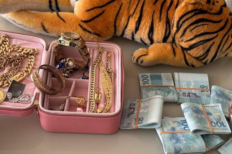 As autoridades apreenderam quatro armas de fogo, dois carros, uma motocicleta, dinheiro em espécie e cenográfico, além de um jetski, demonstrando o padrão de vida luxuoso dos suspeitos.