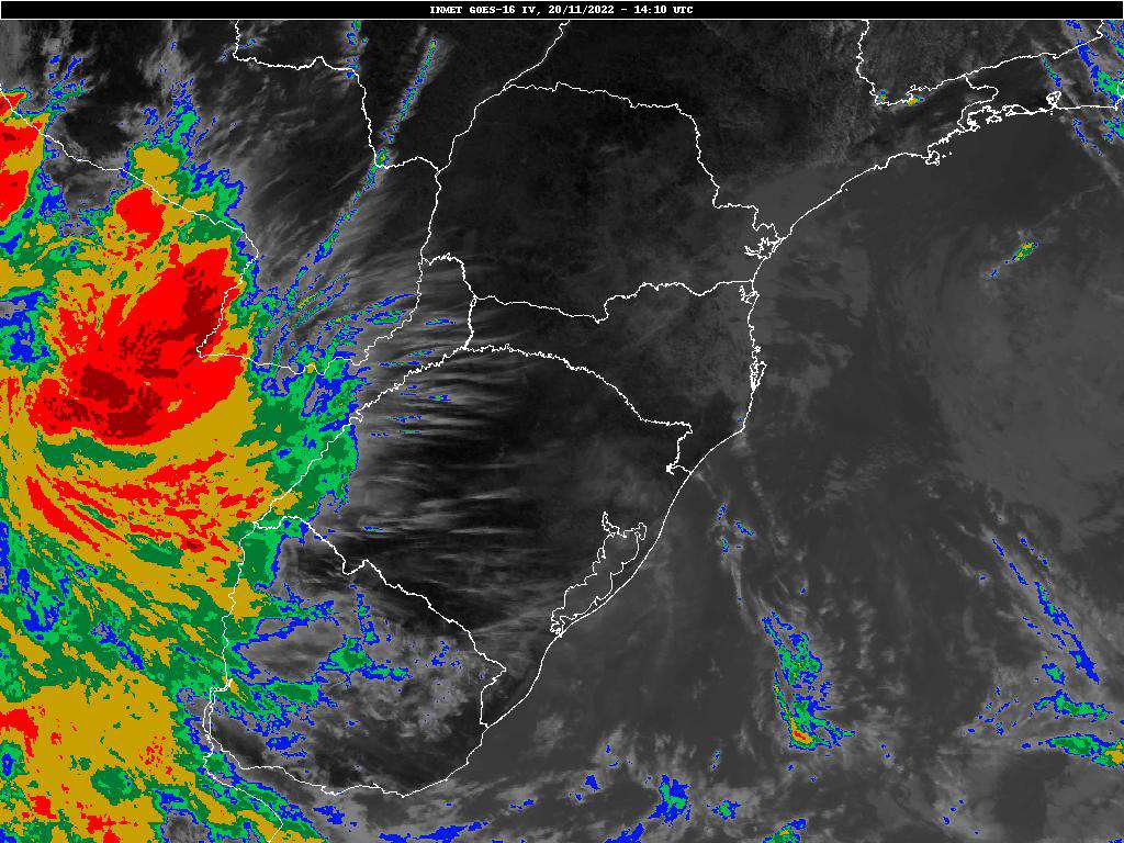 Na terça-feira (22), conforme a frente fria se desloca para o oceano, a chuva diminui na Fronteira Oeste e o ar seco já predomina. Nas demais áreas do Estado, ainda há condições de chuva e tempo mais fechado.