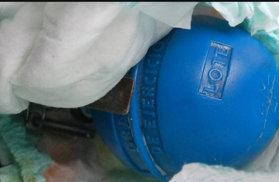 Mas, o que mais surpreendeu foi a localização de uma granada enrolada em uma fralda descartável.