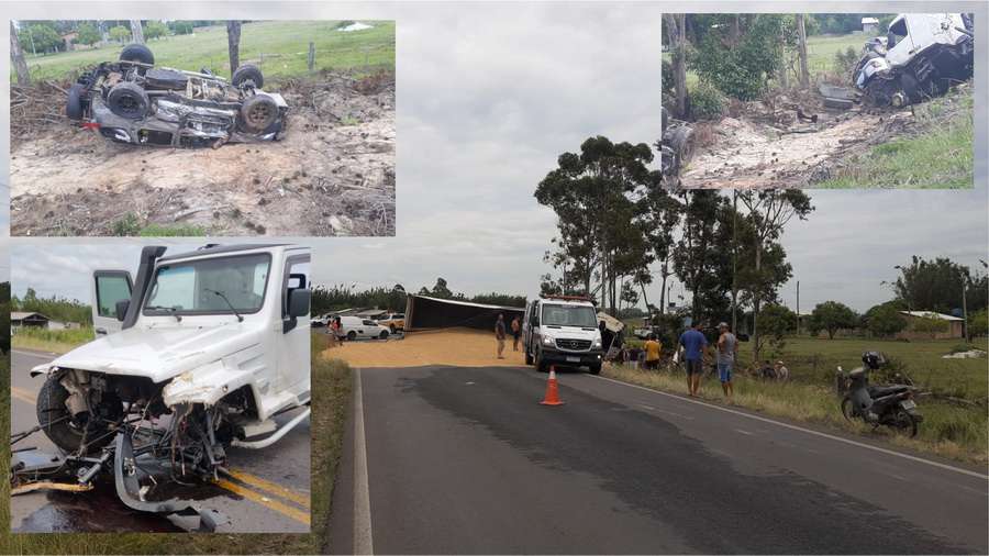 Um grave acidente de trânsito envolveu três carros e um caminhão, no final da manhã desta sexta-feira (04), na RSC-101.