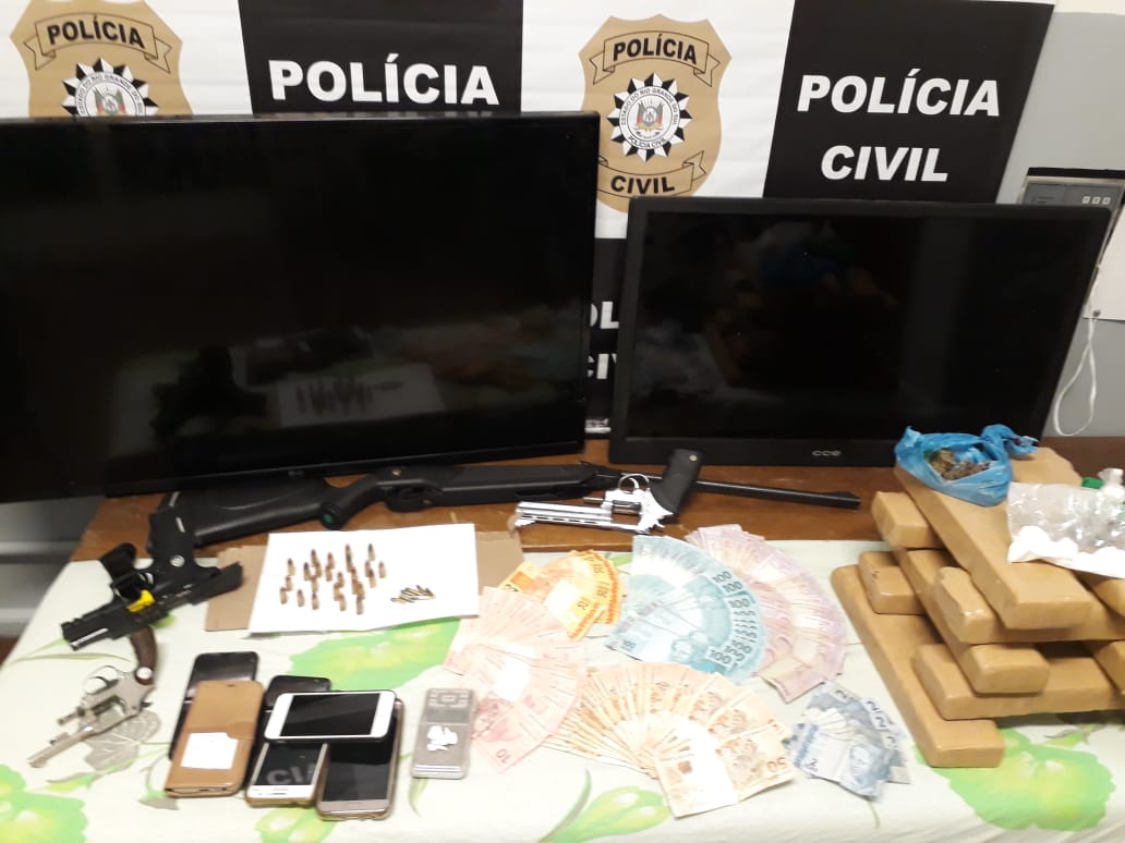 Na ação, quatro homens foram presos e serão encaminhados para a penitenciária modulada estadual do município. Foram apreendidas três armas, quatro veículos, 10 kg de maconha — a droga era levada da Região Metropolitana até o local e sete mil reais