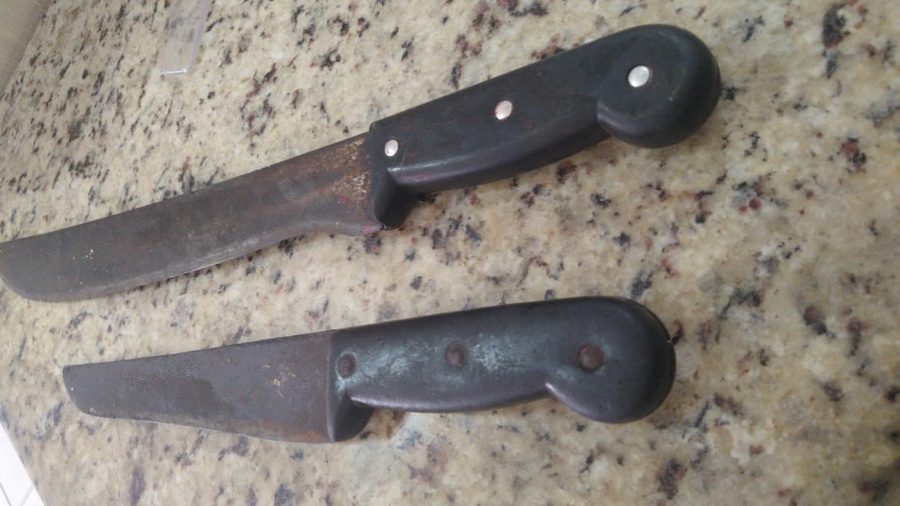 Foram aprendidos com o homem, o facão com lâmina de 40 centímetros, usado para desferir os golpes contra o PM, e uma faca e açougueiro com lâmina de 15 centímetros.