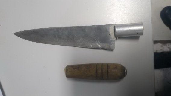 Ele não acatou a voz de comando da BM, sendo necessário um disparo de munição menos letal (borracha) que o atingiu na perna, momento em que foi contido e apreendida a faca.
