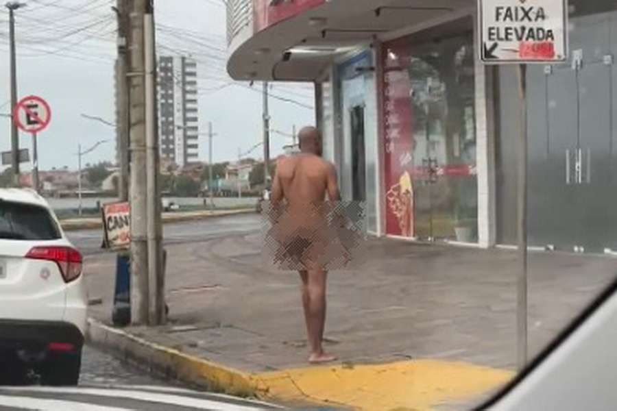 Um homem foi flagrado andando completamente nu em plena luz do dia, pelas ruas de Tramandaí, na segunda-feira (15).