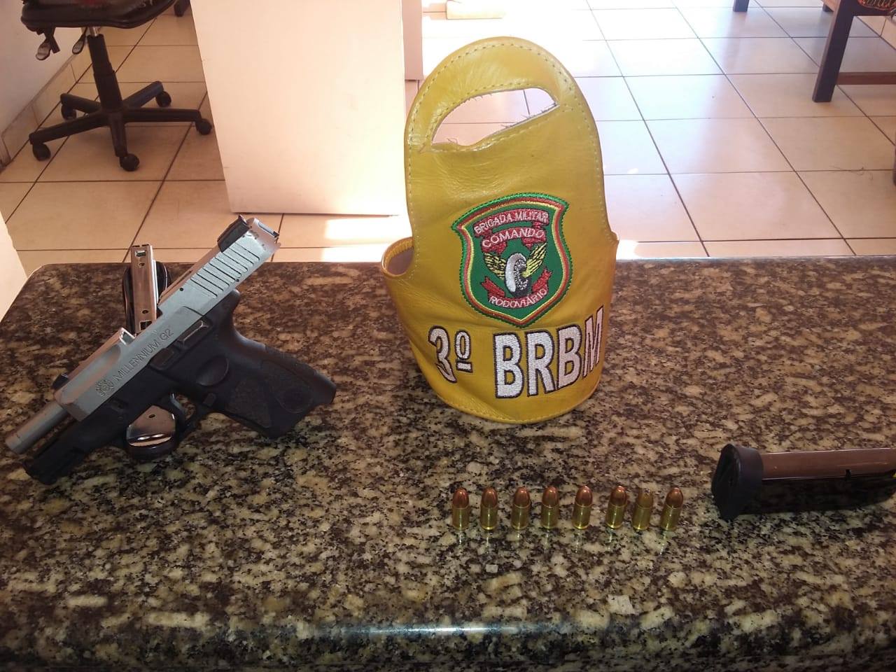 A guarnição de serviço conseguiu abordar o veículo e ao realizar a revista pessoal no motorista foi encontrado uma pistola 9mm.