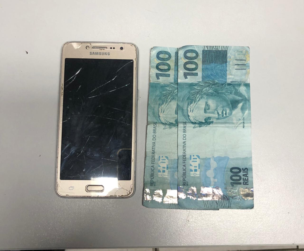 Ele estava com um telefone celular Samsung e duas cédulas falsas de R$ 100.