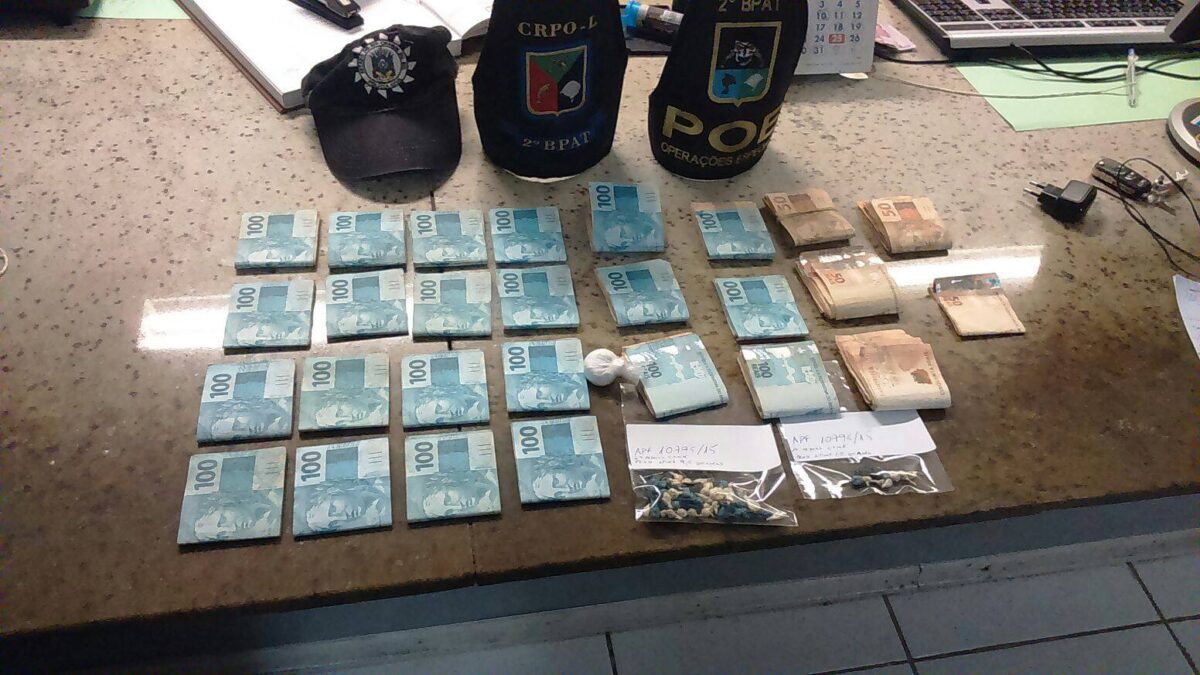 Um homem foi preso com mais de R$ 26 mil e 69 pedras de crack. Dois outros suspeitos também foram encaminhados à Delegacia de Polícia.