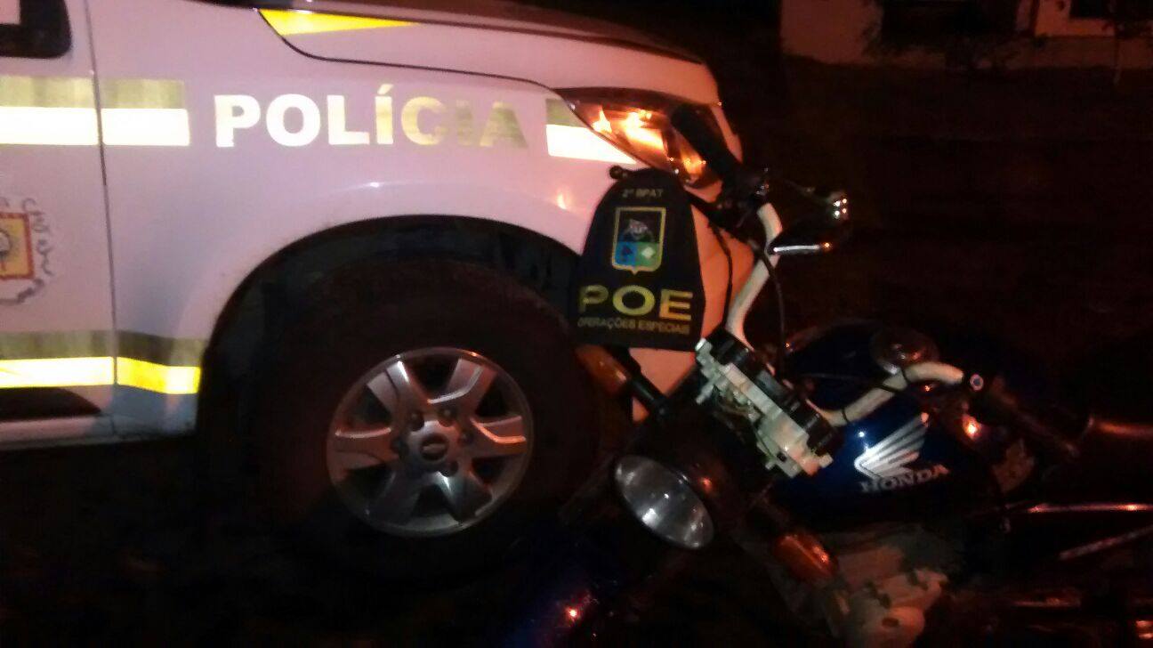 A moto estava sem placa e ao consultar o número do motor constatou-se que estava em situação de furto.