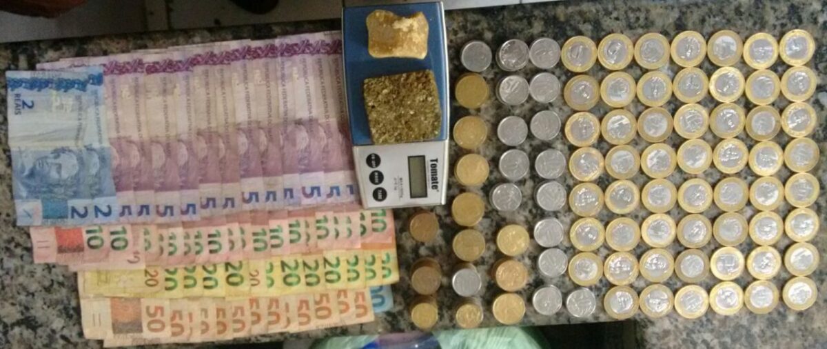 Com ele foi localizado uma balança de precisão, 35 capas de tablete, mais de R$ 1300, crack e maconha.