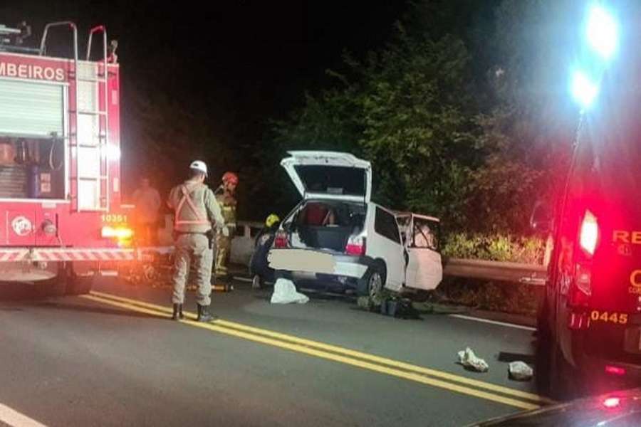 Eles estavam em um Fiat Uno, de cor branca, com placas de Sapiranga, que bateu na cabeceira de uma ponte.