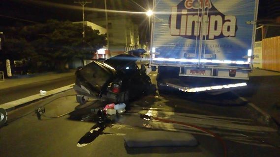 O caroneiro de um veículo morreu após o Fiat Uno em que estava colidir em um caminhão baú que estava estacionado, na Avenida Fernandes Bastos, em frente ao Hotel Kimar, em Tramandaí.