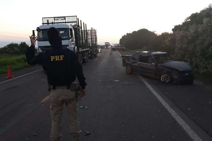Os agentes da PRF informaram que não havia outros passageiros nos veículos envolvidos no acidente e que os motoristas dos caminhões não se feriram.