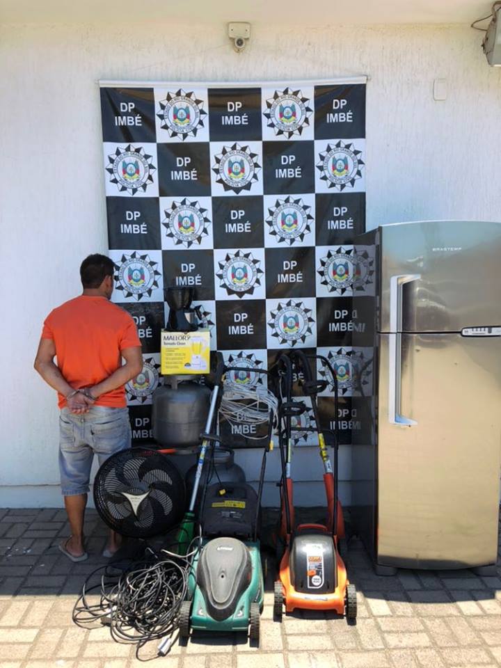 No local, foram apreendidas uma geladeira, dois cortadores de grama, três aparadores de grama, três botijões de gás, eletrodomésticos e outros objetos oriundos de furtos. Alguns objetos já foram reconhecidos e restituídos a uma vítima, que teve sua casa de veraneio arrombada no dia 19.