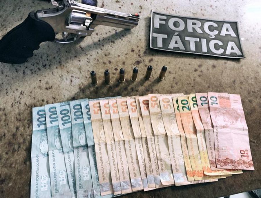 Durante a abordagem, foi localizado na sua cintura um revólver calibre .38, com seis munições intactas, e a quantia de R$ 1.030,00 reais.